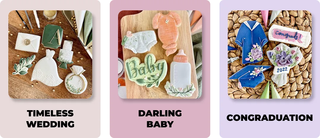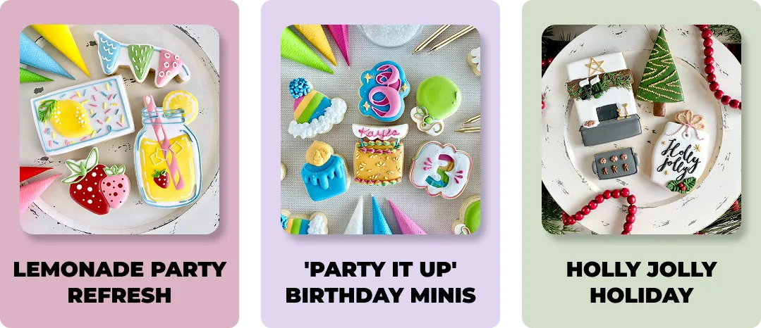 CookieFlix is our exclusive, always-accessible, library of pre-recorded cookie decorating tutorials! We call it CookieFlix because it’s like the Netflix of cookie decorating, offering a diverse and growing collection of cookie classes, techniques, and ideas to spark your creativity anytime.